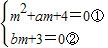 解答:解:设方程的实根为m,代入方程x2+(a+bi)x+4+3i=0得m2+(a+bi)m+4+3i=0,整理,得m2+am+4+(bm+3)i=0