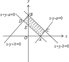 分析 (1)在同一坐标系内画出y≥|x-a|、y≤-|x|+b所表示的平面区域,数形结合可得使A∩B≠∅的a,b之间的关系;