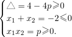 即方程x2+2x+p=0的根都小于或等于0.