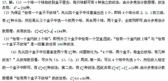(3)恰有一个盒内放2个球,有多少种放法?