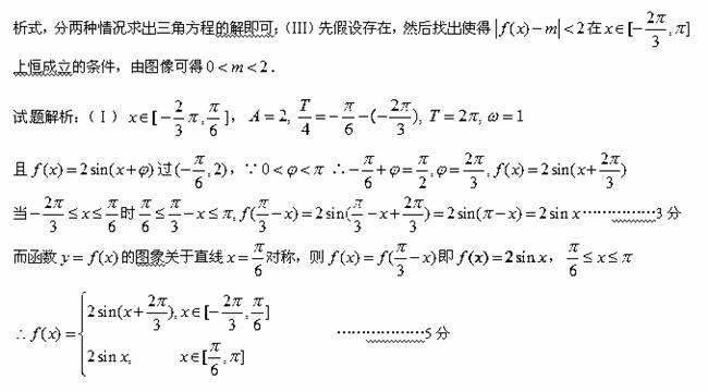 考点:1.利用函数图像求函数解析式;2.解三角方程;3.利用函数图像处理函数不等式的恒成立问题