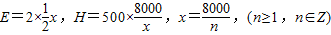 某公司一年需要计算机元件8000个,每天需同样多的元件用于组装整机,该元件每年分n次进货,每次购买元件的数量均为x,购一次货需手续费500元,已购进而未使用的元件要付库存费,可以认为平均库存量为