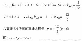 (10分)△ABC中,已知三个顶点的坐标分别是A(,0),B(6,0),C(6,5),