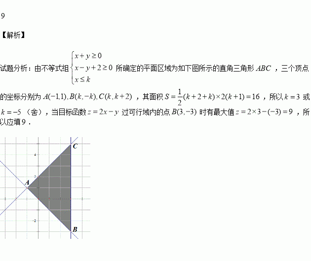 在平面直角坐标系中,若不等式组(为常数)表示的平面区域的面积是16,若为中任意一点,则目标函数的最大值为___________.