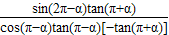 【答案】分析:(1)原式分子第一项第一个因式利用诱导公式sin(2π-α)=-sinα化简,第二个因式利用tan(π+α)=tanα化简,分母中的第一个因式先利用余弦函数为偶函数进行变形后,再利用诱导公式cos(π-α)=-cosα化简,第二个因式先利用诱导公式tan(2π+α)=tanα化简,再利用正切函数为奇函数变形,最后一项先利用正切函数为奇函数变形后再利用诱导公式tan(π+α)=tanα化简,再利用同角三角函数间的基本关系变形,约分后即可得到最简结果;