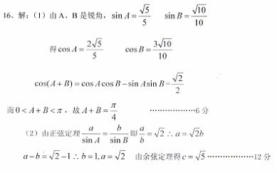 在△ABC中,A、B为锐角,角A、B、C所对的边分别为a、b、c,且sinA=![]()