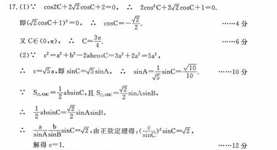 在ABC中,角A、B、C 所对的边分别为 ,cos2C+2cosC+2=0.