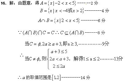 (本小题满分14分)已知集合,,.若,试确定实数的取值范围.