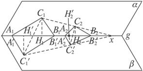 由这些点向对应轴直线g作垂线C1H1,C1′H1′,C2H2,C2′H2′.