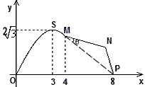 如图,某市拟在长为8km的道路OP的一侧修建一条运动赛道,赛道的前一部分为曲线段OSM,该曲线段为函数y=Asinωx(A>0,ω>0)x∈[0,4]的图象,且图象的最高点为S(3,2