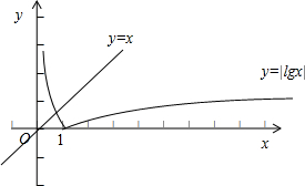 当x>1时,lgx<x,如图所示,故函数y=|lgx|的图象和直线y=x的交点的个数为1,