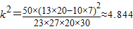 【答案】分析:由题意知根据表中所给的数据得到观测值是4.844,从临界值表中可以知道4.844>3.841,根据临界值表中所给的概率得到与本题所得的数据对应的概率是0.05,得到结论.