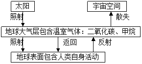 地球温室效应主要反映了自然界热能的交换和自平衡过程,其结构图如下: