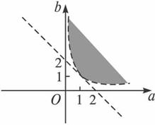 a+b>2,点(a,b)所在的区域为阴影部分,