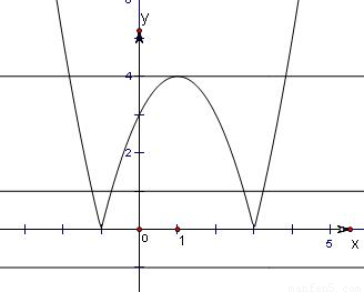 即函数f(x)=|x2-2x-3|与函数y=-1,y=1,y=4的交点的个数,