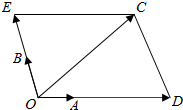 解:如图,$\overrightarrow{OC}$=$\overrightarrow{OD}$+$\overrightarrow{OE}$=λ$\overrightarrow{OA}$+μ$\overrightarrow{OB}$,
