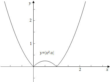 (2)作函数y=|x2-x|的图象,从而写出单调减区间和值域.
