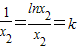 当g(x)与y=kx相切时,设切点为(x2,lnx2),则