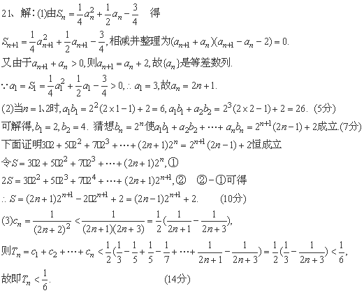 (2)是否存在等比数列{bn},使a1b1+a2b2+…+anbn=(2n-1)·2n+1+2对一切正整数都成立?并证明你的结论.