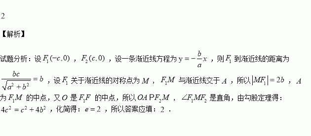 已知分别是双曲线的左,右焦点,点关于渐近线的对称点恰好在以为圆心,(为坐标原点)为半径的圆上,则该双曲线的离心率为 .