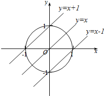 作圆x2+y2=1与直线y=x+k图象如下,![]()