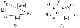 解:(1)如图甲,当a与b不共线时,由向量减法法则并根据三角形两边之差小于第三边知|a|-|b|<|a-b|.