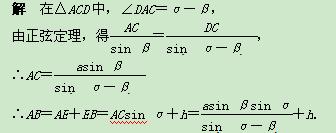 如图,H、G、B三点在同一条直线上,在G、H两点用测角仪器测得A的仰角分别为α,β,CD=a,测角仪器的高是h,用a,h,α,β表示建筑物高度AB.