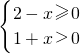 解得-1<x≤2