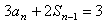 已知数列{an}的前n项和为Sn,a1=1,且3an+1+2Sn=3(n为正整数),