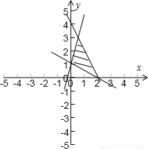 解:不等式表示的区域如图所示,三个交点坐标分别为(0,1),(