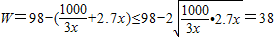 当x>10时,W=xR(x)-(10+2.7x)=98-