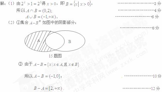 (本小题满分12分)已知A , (1)求和;(2)若记符号,①在图中把表示“集合”的部分用阴影涂黑; ②求和.