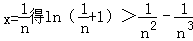 即当x∈(0,+∞)时,有x3﹣x2+ln(x+1)>0,ln(x+1)>x2﹣x3,对任意正整数n,取