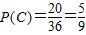 (2)记事件C:“至少出现一次5点或6点”,则事件C含有基本事件有20个,而所有的基本事件有36个,由此求得至少出现一次5点或6点的概率.