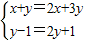 解答:解:∵:(x+y)+(y-1)i=(2x+3y)+(2y+1)i,