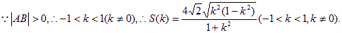 与圆O:x2+y2=4相交于A,B两点,O为坐标原点,△AOB的面积为S。(1)试将S表示为k的函数S(k),并求出它的义域;求S的最大值,并求出此时的k值。