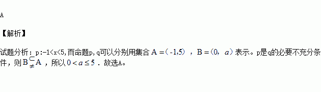设条件p:|x-2|<3,条件q:0<x<a,其中a为正常数.若p是q的必要不充分条件,则a的取值范围是( )