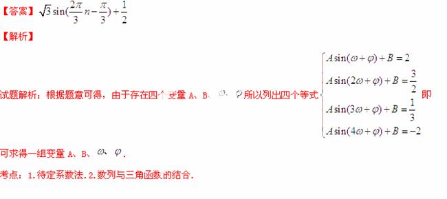 数列有一个形如的通项,其中A、B、均为实数,且,则此通项公式为= 。(写出一个即可)