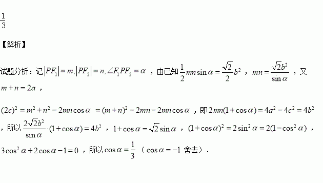 已知为椭圆的两个焦点,在椭圆上,且的面积为,则 .