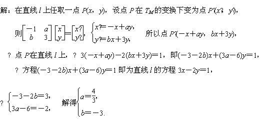 已知a、b∈R,若M=所对应的变换TM把直线l:3x-2y=1变换为自身,试求实数a、b的值.