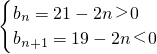 (2)由于bn=20-an=21-2n,则b1=19,bn-bn-1=-2<0.