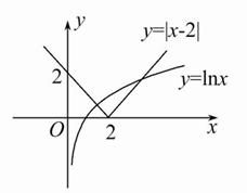 函数f(x)=|x-2|-lnx在定义域内零点的个数为( )
