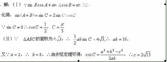 (Ⅰ)求角C的大小; (Ⅱ)若,求边长.