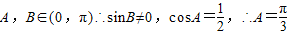 【答案】分析:(1)用向量的共线的充要条件及三角形中的正弦定理求得角A.
