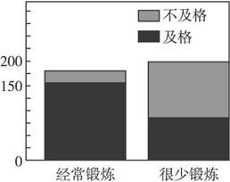 即经常锻炼的及格率大于很少参加锻炼的及格率,所以,可以粗略估计,经常参加锻炼和很少参加锻炼对及格率有一定的影响.
