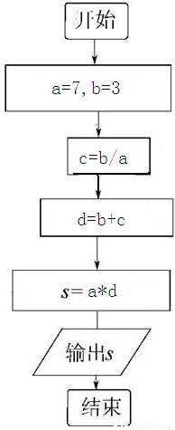 甲、乙两人用扑克做四则运算游戏,每人出二张牌,答案为24,现四张牌为7,7,3,3,不一会,甲说他算出来了,请你把甲的算法步骤写出来.(用自然语句描述)并画出算法流程框图.