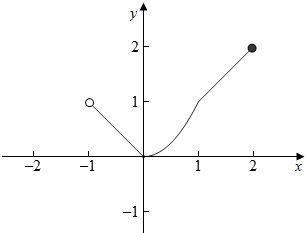 3.做函数y=f(x)=$\left\{\begin{array}{l}{-x,-1<x<0}\\{{x}^{2},0≤x<1}\\{x,1≤x≤2}\end{array}\right.$的图象,求f(-0.8),f($\frac{1}{2}$),f($\frac{3}{2}$).分析 根据分段函数的画法即可画出图象,再根据函数值得求法,求出相应的函数值.