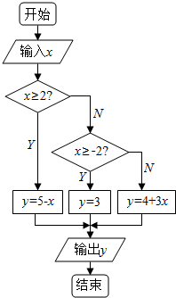 第二步,根据函数f(x)=$\left\{\begin{array}{l}{5-x(x≥2)}\\{3(-2≤x<2)}\\{4+3x(x<-2)}\end{array}\right.$
