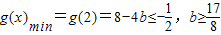 当b<1时,g(x)min=g(1)=5-2b>0与(※)矛盾;