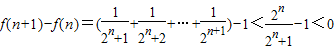 由于,f(n+1)<f(n),故n≥3时,f(n)≤f(3)<0,此时